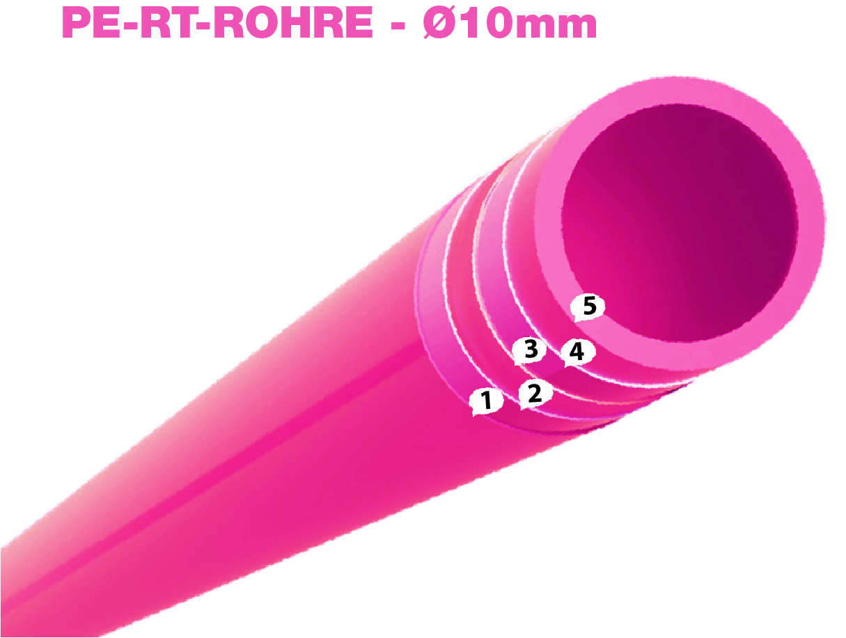 Die PE-RT-Rohre erfüllen die Norm ISO 10508, Klasse 4, für Fußbodenheizungen.