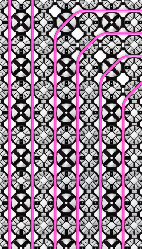 - Die Gitter erlauben die Verlegung der Rohre in 45°-Schritten. Dadurch erfährt das Rohr weniger Stress und die Reibungsverluste in Umlenkungen werden minimiert.